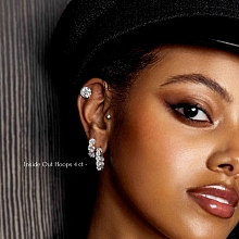 • 14K White Gold 4 ct Shared Prong Inside Out Hoops