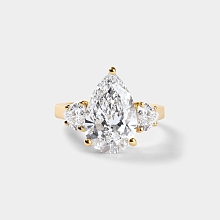 • 14K Yellow Gold Pear Cut Diamond Three-Stone Engagement Ring