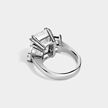 • Side Stones: 2 Trapezoid Cut Lab Grown Diamonds, total weight 1.56 ct (0.78 ct each), E color, VS1 clarity, Very Good cut.
